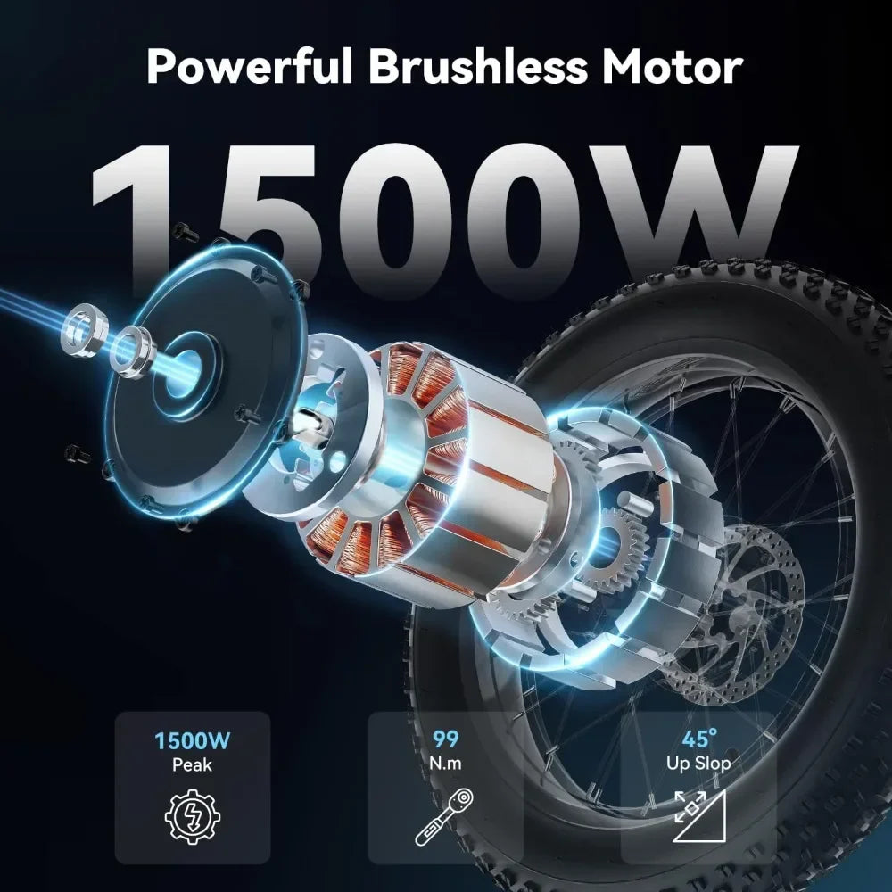 [Powerful Brushless Motor & 30MPH Max Speed]- ebikes for adults is equipped with a 750W high-speed brushless motor(peak 1500W), 99Nm maximum torque, and up to 30MPH speeds, making steep hills and long rides a breeze. 7-speed transmission and 4 cycling modes: pure electric, electric assist, pure pedal, and cruise Mode. With 20 x 4-inch fat tires, it can traverse including mountains, snow, beaches, rocky roads, and even urban jungles.