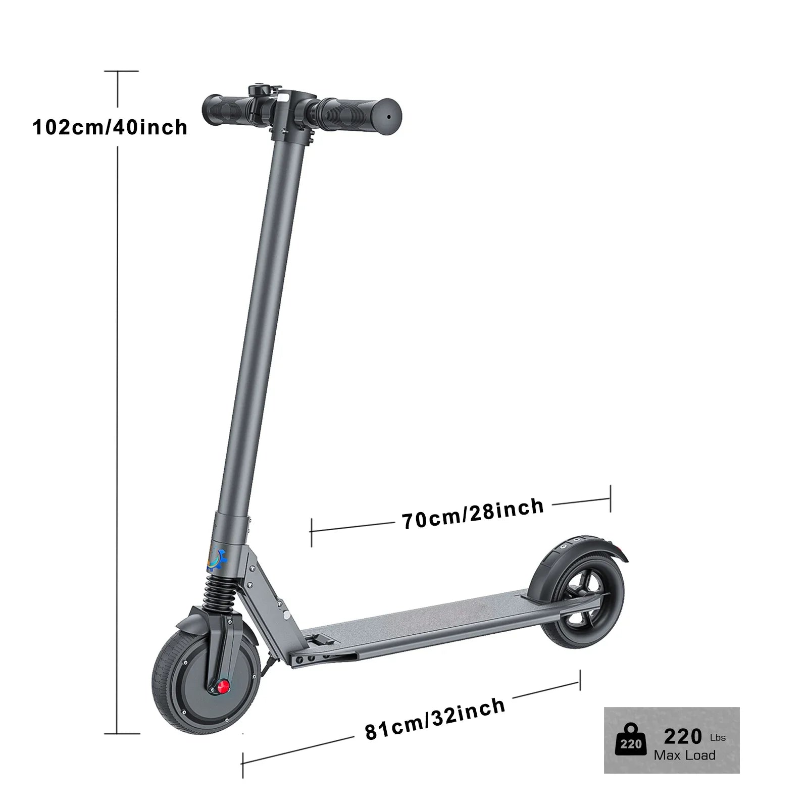 【Portable & Foldable】This foldable electric scooter has a quick-release folding system, and the front bar snaps onto the rear fender. Folded size: 44.5*18.5*19.7 inches. Easy to store in the trunk or other compact space. Perfect for commuting and traveling.